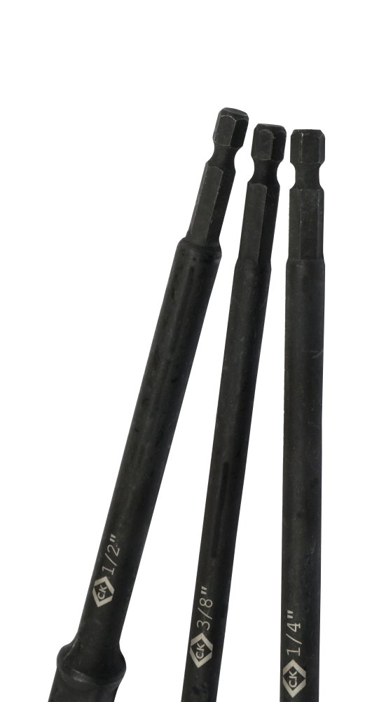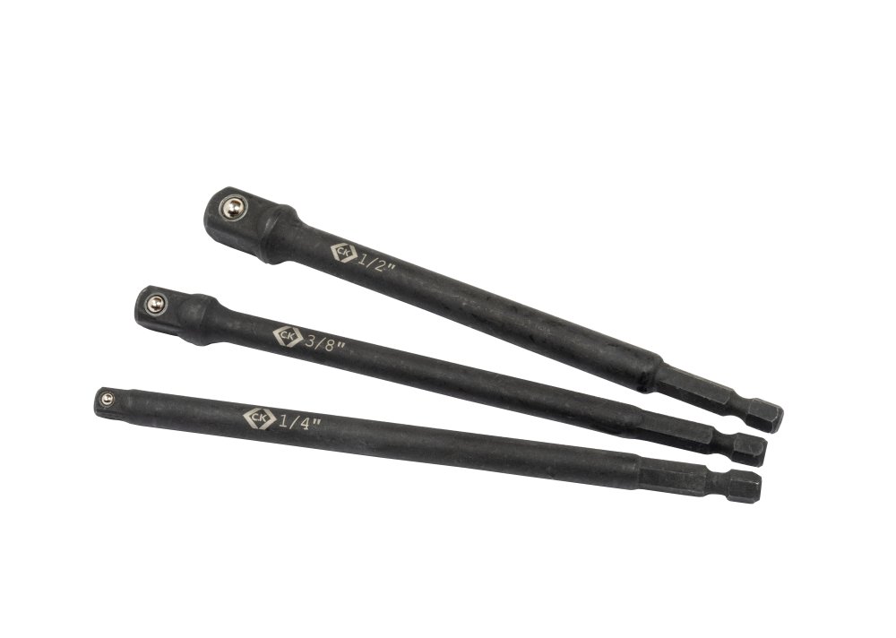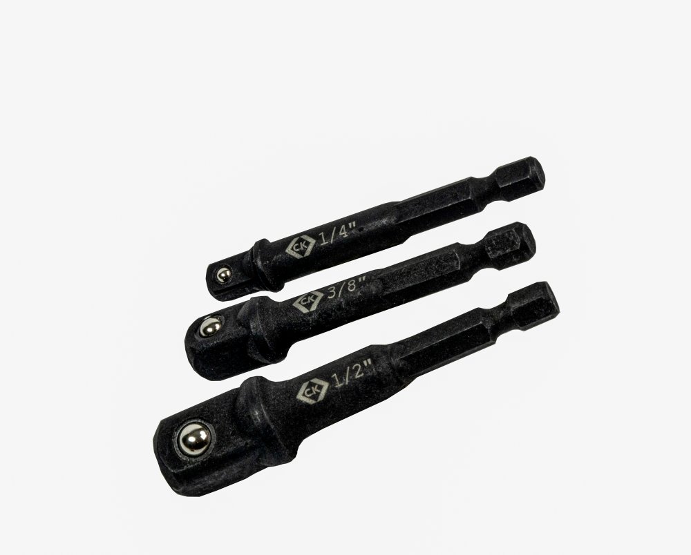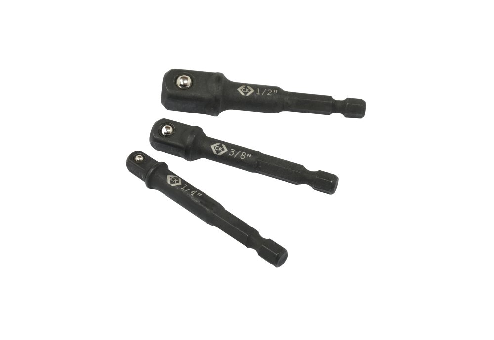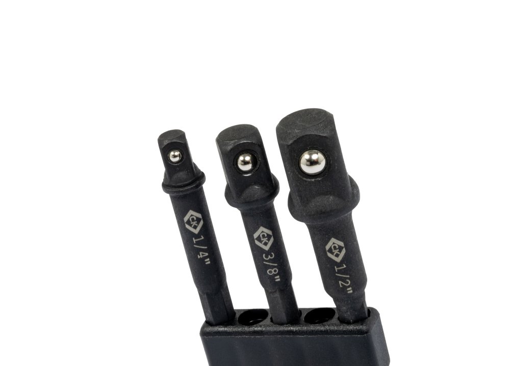 - Contents of set: 1/4, 3/8 and 1/2 inch adapters x 65mm with each E6.3 Hex Drive