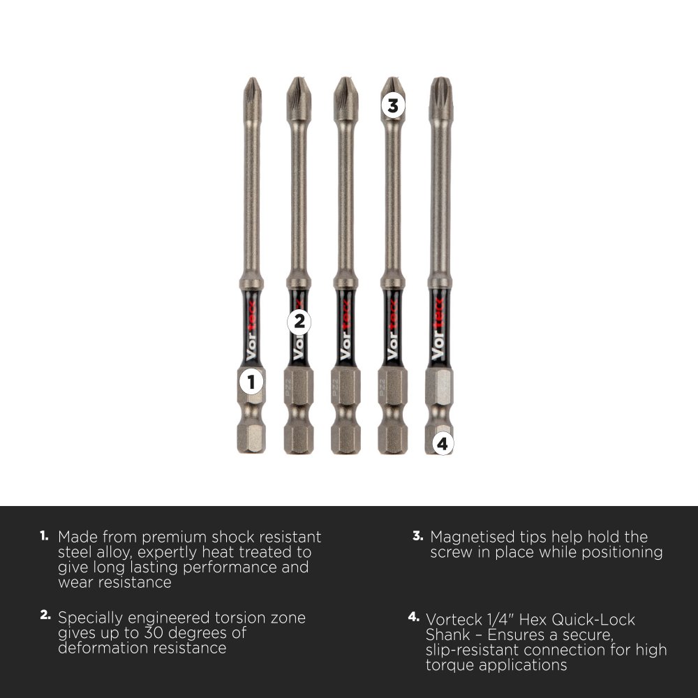 • Vorteck Impact screwdriver bits are designed to be tough, durable and the perfect fit.